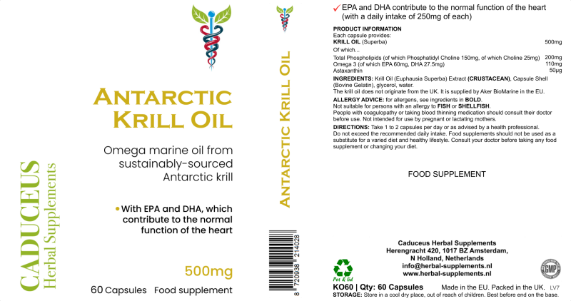 Antarctische krillolie (Euphausia superba) is een natuurlijke bron van omega 3-olie met een hoge concentratie, de krachtige antioxidant astaxanthine en een hoog gehalte aan fosfolipiden - een fundamenteel onderdeel van menselijke celmembranen. Het bevat twee soorten Omega 3-vetzuren: eicosapentaeenzuur (EPA) en docosahexaeenzuur (DHA).